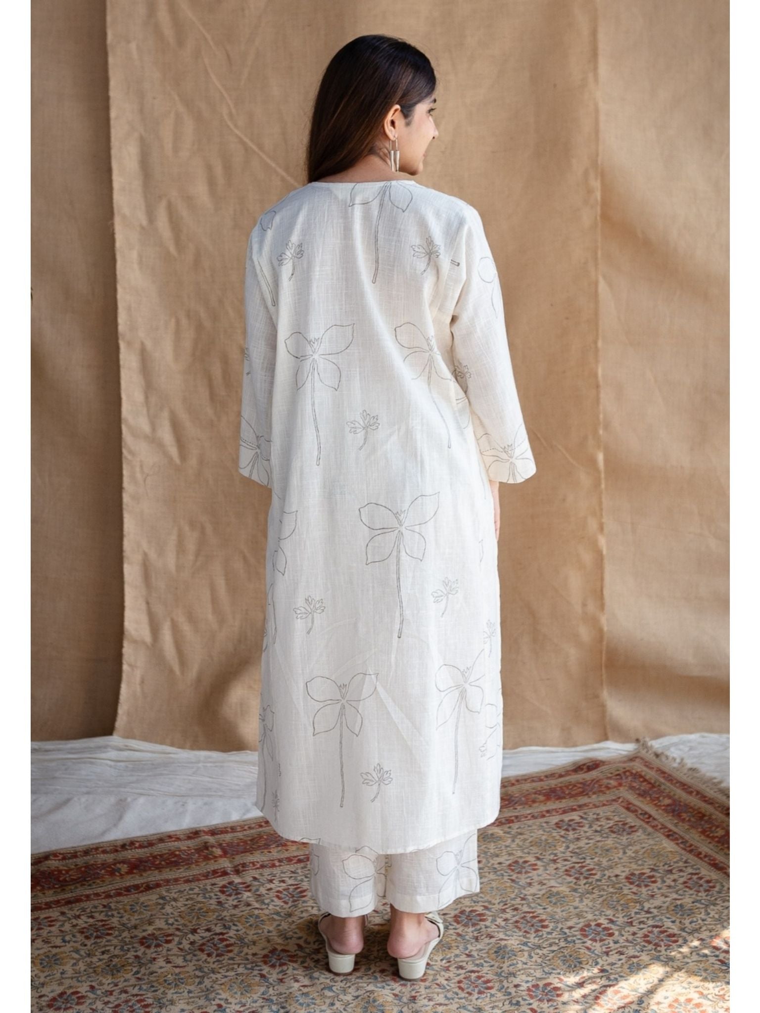 Straight-Cut Kurta: Features a long, relaxed straight-cut silhouette with side slits for ease of movement.